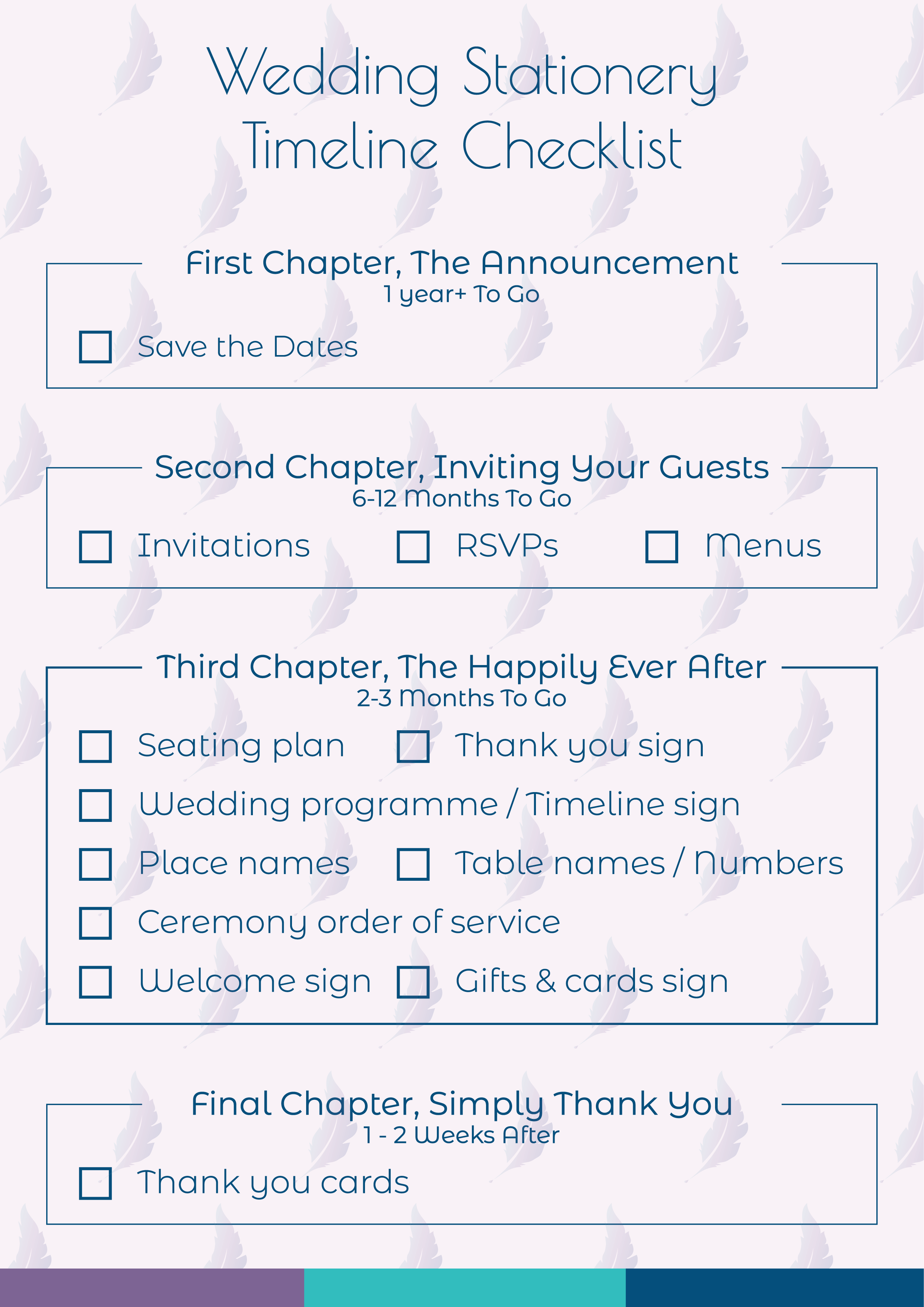 This checklist, complete with a timeline, will give you an idea of when to order your wedding stationery to ensure everything arrives in plenty of time.
